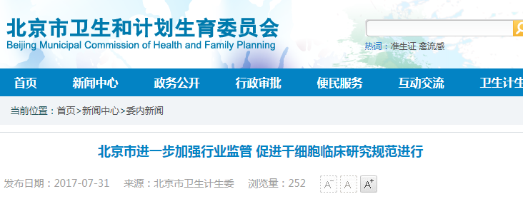 日前,北京市衛(wèi)生和計劃生育委員會、北京市食品藥品監(jiān)督管理局聯(lián)合印發(fā)《關(guān)于進(jìn)一步加強北京地區(qū)醫(yī)療機構(gòu)干細(xì)胞臨床研究管理的實施意見》(以下簡稱《意見》)?!兑庖姟分赋?,北京行政區(qū)域內(nèi),除已有規(guī)定的、未經(jīng)體外處理的造血干細(xì)胞移植及按藥品申報的干細(xì)…