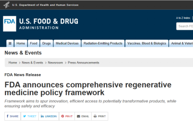 美國食品和藥物管理局11月16日宣布,它正在發(fā)布一個(gè)新的政策框架,可以更迅速地為患者提供涉及人體細(xì)胞和組織(如干細(xì)胞)的治療,同時(shí)對引起安全問題的產(chǎn)品加強(qiáng)執(zhí)法力度。FDA專員Scott Gottlieb博士表示:我們正在采用建立在現(xiàn)有法規(guī)基礎(chǔ)上的,基于風(fēng)險(xiǎn)…